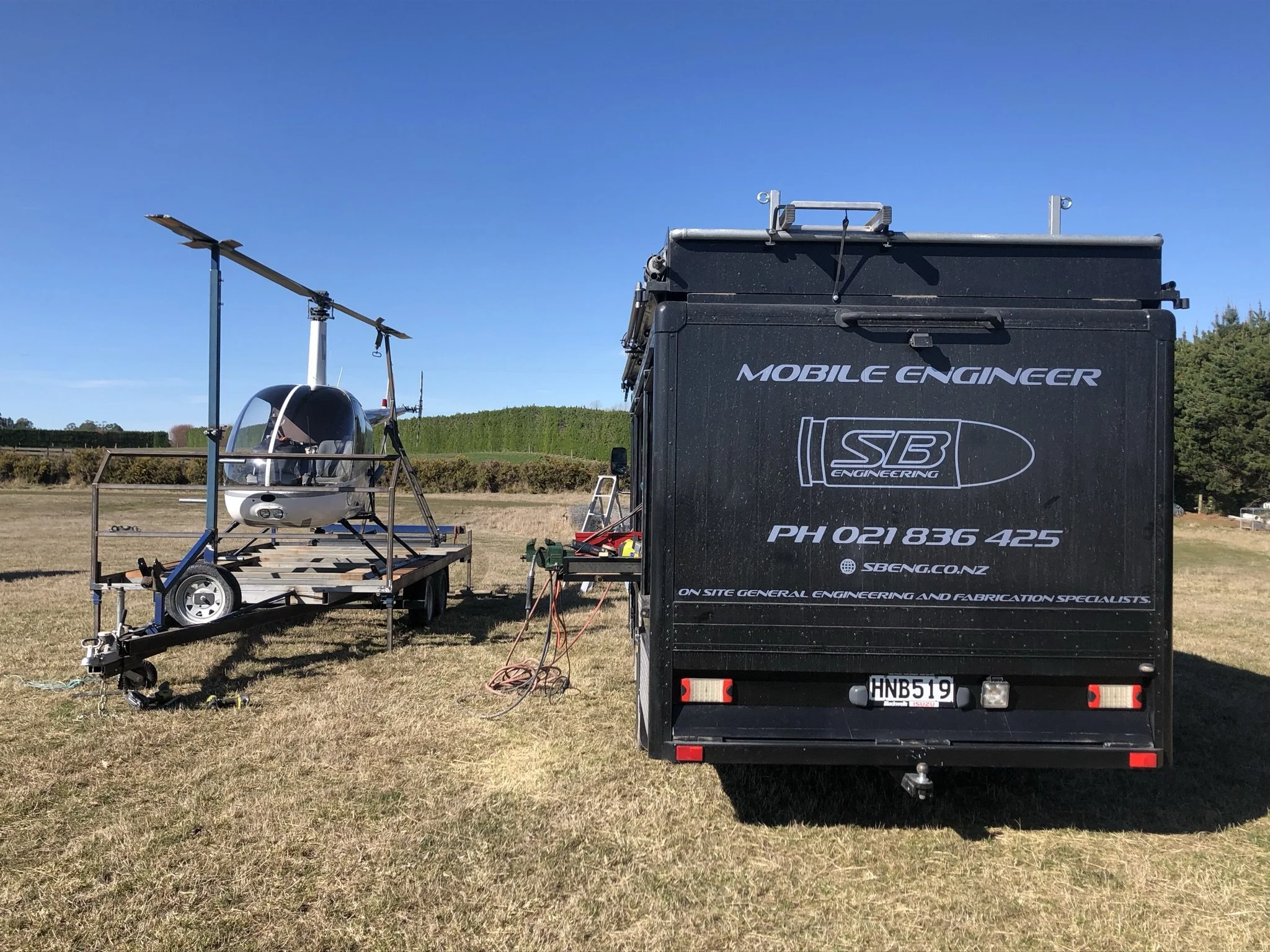 This was again a very well suited job for SB Engineering as it was not possible for the customer to get the helicopter to a workshop safely and with the extensive inventory of equipment that the SB Engineering truck carries with it, the work on the trailer on site was able to be carried out very efficiently and then also finishing work back at our workshop safely and efficiently also.